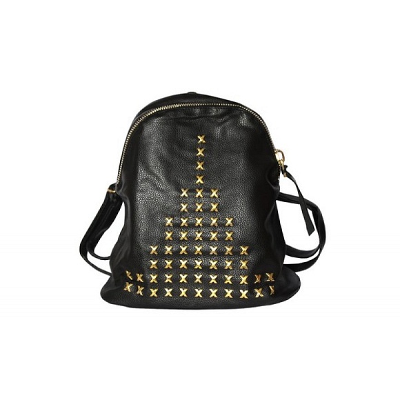 Опис Рюкзак чорний кожзам із золотими заклепками 38*28 см 7279 (583)