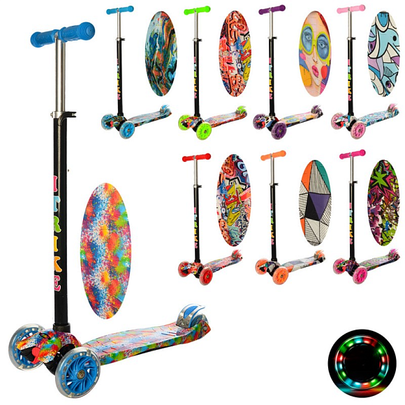 Самокат JR 3-055-L MAXI, кол 3 шт. ПВХ світ., 2 пер. 120 мм., задн. 75мм., принт, 8 видів/8 кольорів