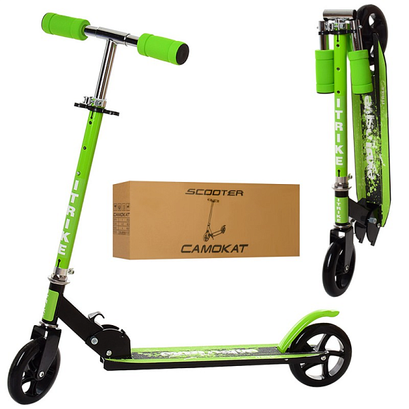 Від 5-ти роківСамокат iTrike SR 2-005 з алюмінієво-сталевою конструкцією обов'язково сподобається малюкові і допоможе весело і з радістю проводити час, буде сприяти розвитку координації рухів і вміння тримати рівновагу. Він надійний і зручний у використанні, його легко скласти для перенесення або зберігання. Самокат обладнаний ножним гальмом для максимальної безпеки дитини.