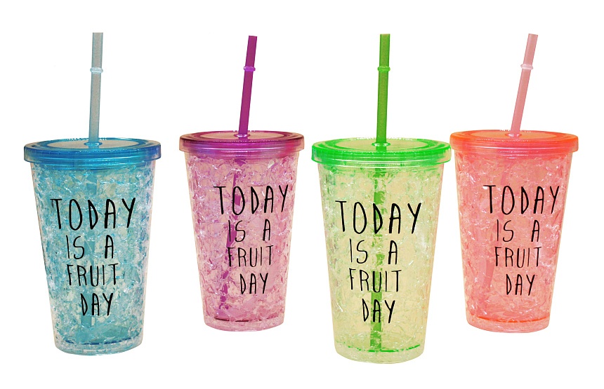 Опис Склянка С-2 пластм. кольорові. з мал. кришкою та труб. 450мл (15,6*10)см