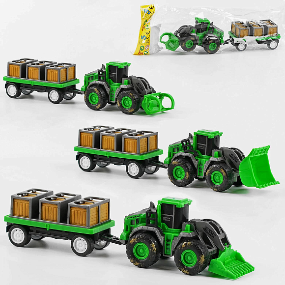 Пізнайте всю велич сільськогосподарського спецобладнання разом з крутим трактором з причепом 268-21. Рухомі елементи додадуть цікавості грі, а інерційний механізм зробить рух спецтехніки більш потужним. Трактор допоможе втілити різні тематичні сюжети у житті та додасть різноманіття у дозвілля малюка!Особливості: