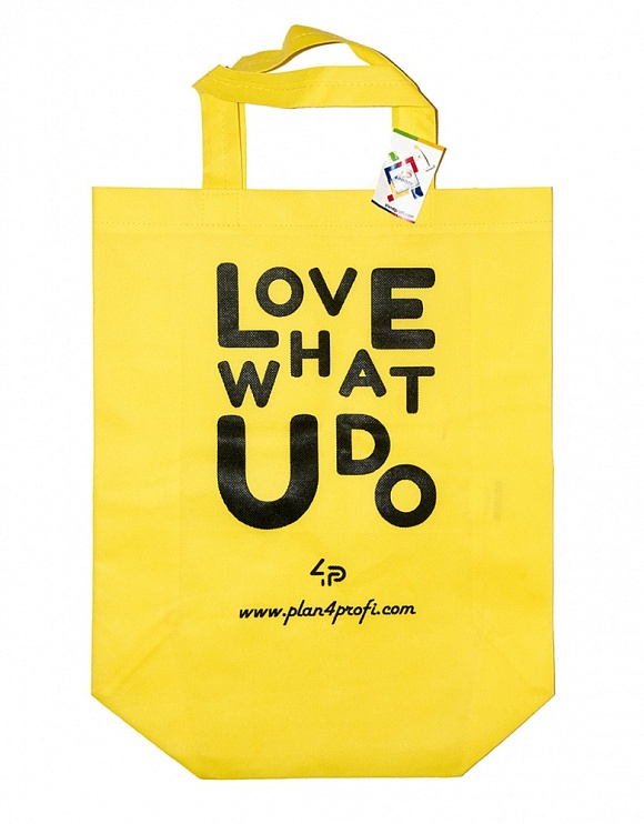 Опис Сумка зі складним боком жовта (спанбонд) 35х45 см з принтом