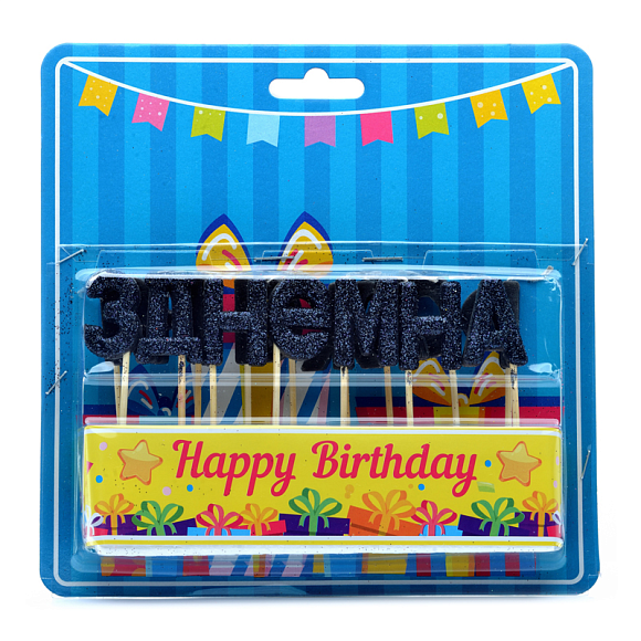 Опис Свічка для торта побуквенна "З Днем народження" чорні блиск