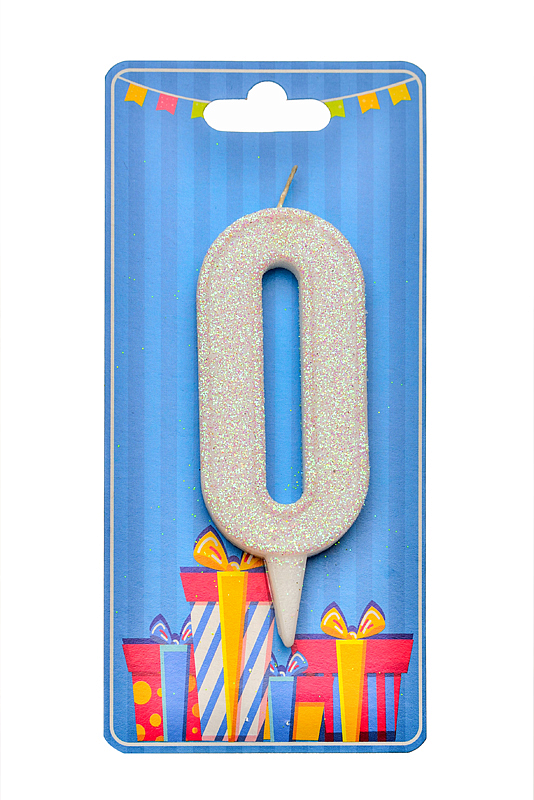 Свічка у формі цифри "0" відмінно підійде для декорування торта або інших десертівСвічку вироблено з якісного парафіну у формі цифри білого кольору, посипана зверху білим глітером середньої фракції