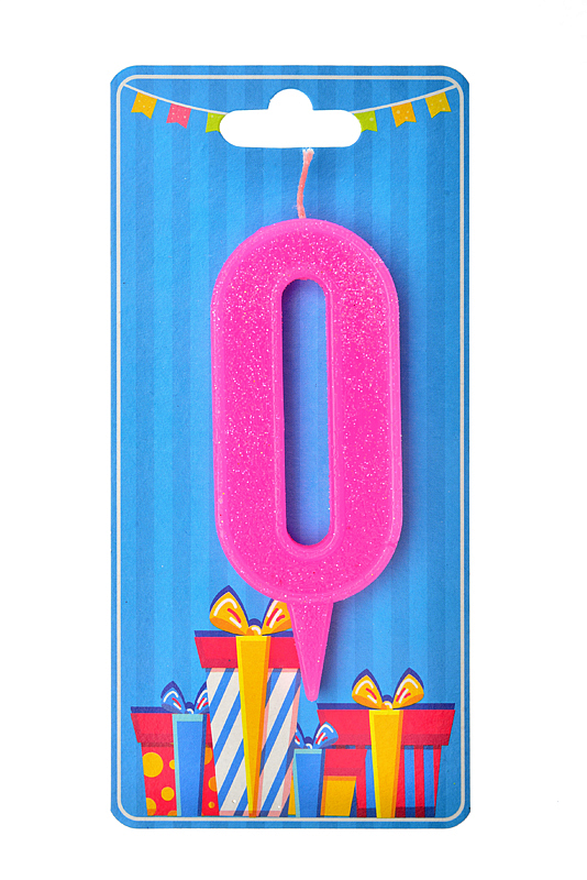 Свічка у формі цифри "0" відмінно підійде для декорування торта або інших десертівСвічку вироблено з якісного парафіну у формі цифри рожевого кольору, посипана зверху райдужним глітером середньої фракції