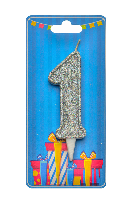 Опис Свічка для торта "Цифра 1" срібло блиск