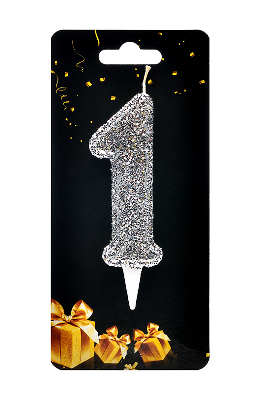 Опис Свічка для торта "Цифра 1" срібло магічне