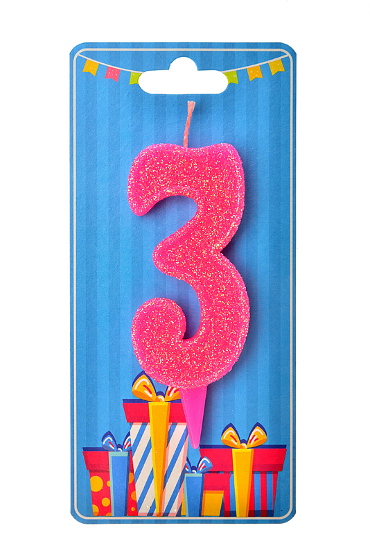 Свічка у формі цифри "3" відмінно підійде для декорування торта або інших десертівСвічку вироблено з якісного парафіну у формі цифри рожевого кольору, посипана зверху рожевим глітером середньої фракції