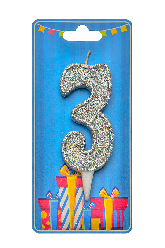 Опис Свічка для торта "Цифра 3" срібло блиск