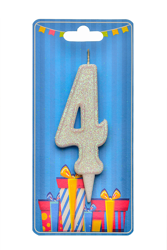 Свічка у формі цифри "4" відмінно підійде для декорування торта або інших десертівСвічку вироблено з якісного парафіну у формі цифри білого кольору, посипана зверху білим глітером середньої фракції