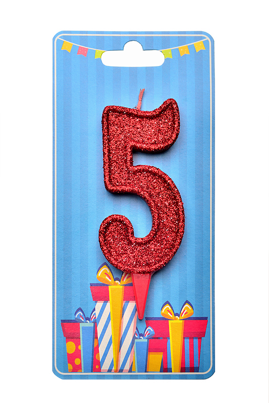 Свічка у формі цифри "5" відмінно підійде для декорування торта або інших десертівСвічку вироблено з якісного парафіну у формі цифри червоного кольору, посипана зверху червоним глітером середньої фракції