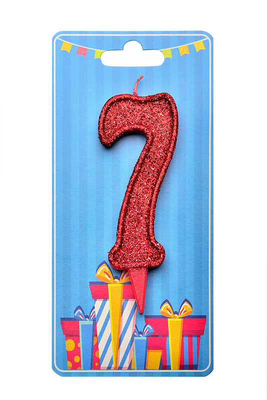 Свічка у формі цифри "7" відмінно підійде для декорування торта або інших десертівСвічку вироблено з якісного парафіну у формі цифри червоного кольору, посипана зверху червоним глітером середньої фракції