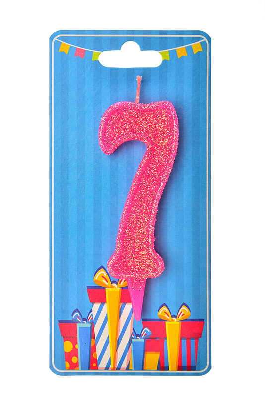 Свічка у формі цифри "7" відмінно підійде для декорування торта або інших десертівСвічку вироблено з якісного парафіну у формі цифри рожевого кольору, посипана зверху рожевим глітером середньої фракції