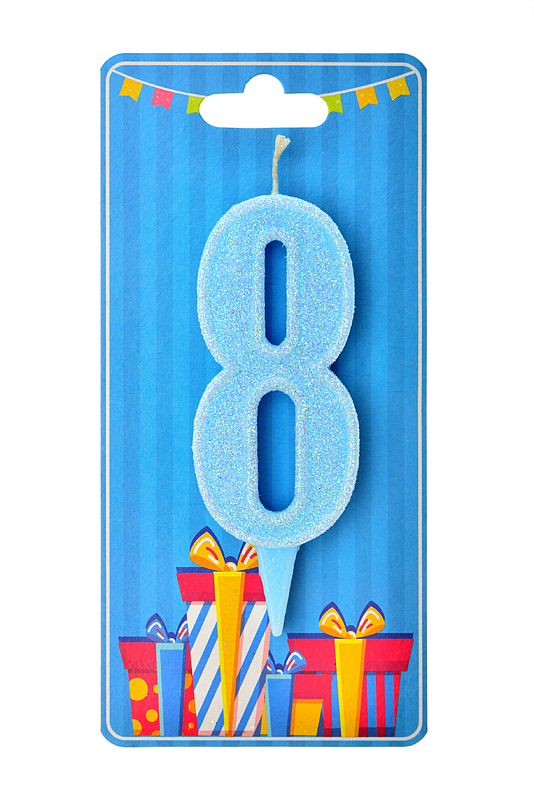 Опис Свічка для торта "Цифра 8" блакитна блиск