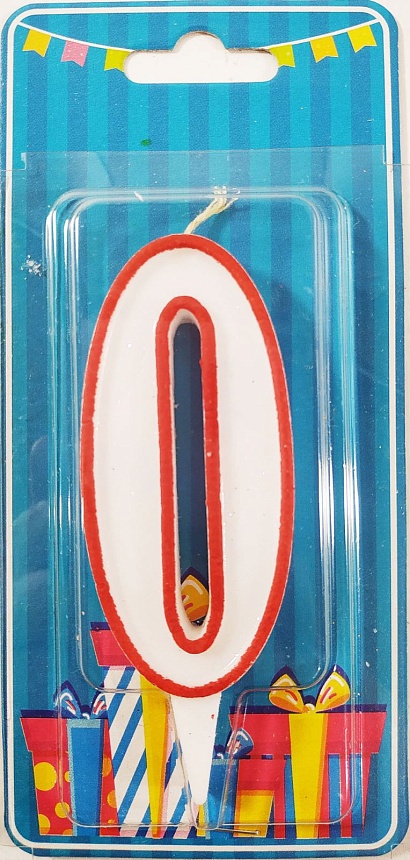 Свічка цифра "0" біла червоний контур