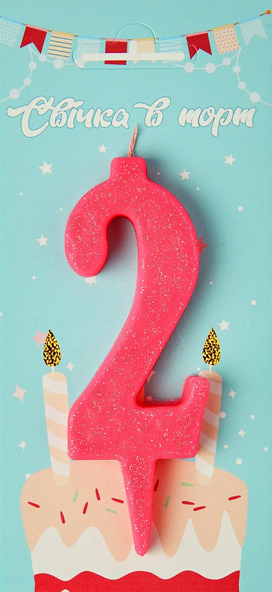 Свічка в торт рожева 2 (блиск)