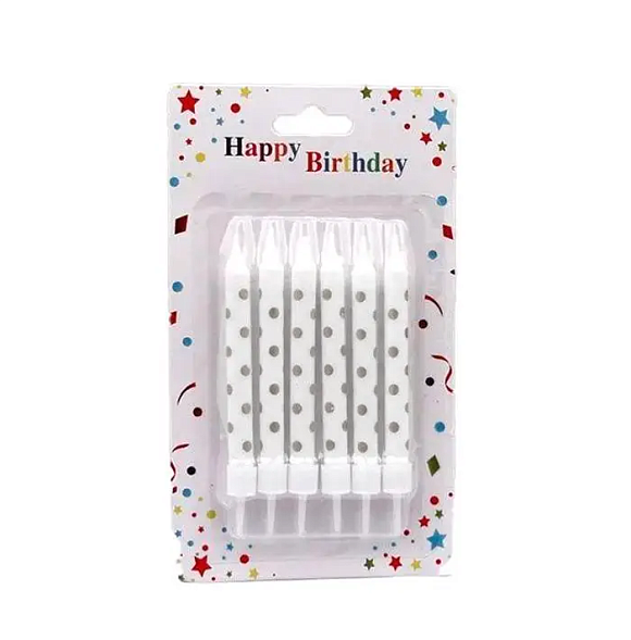 Свічки Білі з срібним горошком (6 шт.)