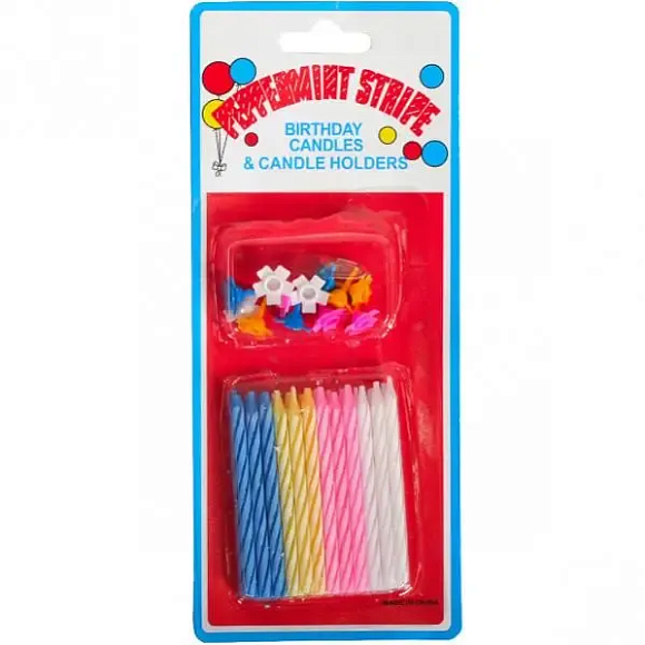 Яскраві воскові свічки в спіральну смужку на торт. Чудовий декор для святкових тортів на День народження.Посипка: відсутня.