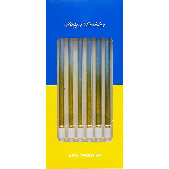 Свічки для торту прямі "Жовто-блакитні" 6шт в уп