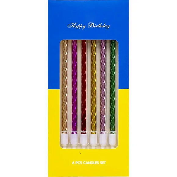 Опис Свічки для торту спіраль "Металік асорті " 6шт в уп