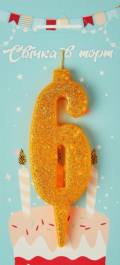Опис Свічки для торту золото цифра 6