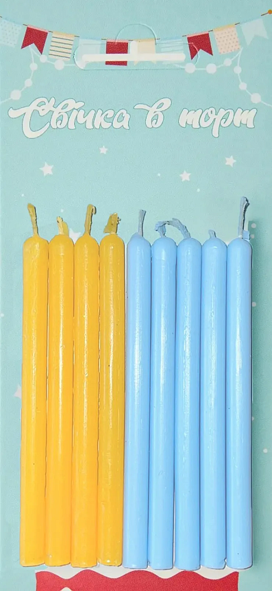 Опис Свічки на торт прямі Жовто-блакитні 9 шт/уп