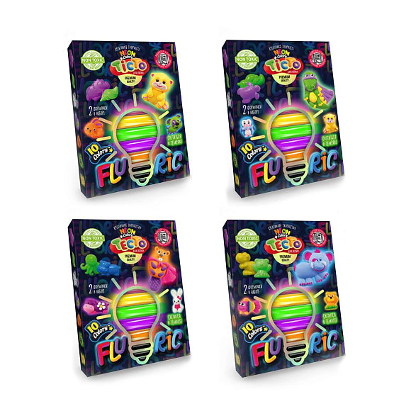 Тісто для ліплення "FLUORIC" - це набір креативної творчості, розроблений для дітей та дорослих. Його унікальність полягає у складі самого матеріалу тесту та дивовижній властивості світитися у темряві. Воно дуже м'яке, але добре тримає форму, приємне на дотик, Яскраве та безпечне. Різнокольорові брусочки флуоресцентного тіста та інструкція допоможуть створити чарівний світ із найрізноманітніших предметів та кумедних іграшок, які дитина із задоволенням зробить сама.Ніжність та пластичність матеріалу сприяє розвитку тактильних відчуттів та дрібної моторики рук у дітей.