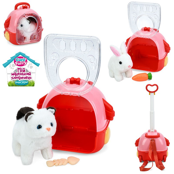 Тварина 777-114A ходить, рух.дет.,плюш,2 види(зайчик,кіт), рюкзак(2 колеса)муз.,бат.,кул.,21-20-17см