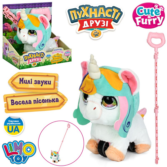 Опис Тварина M 6249 I UA єдиноріг,19см,каталка на палці (65см), муз.(укр),пісня,звук,плюш,на бат., в кор.