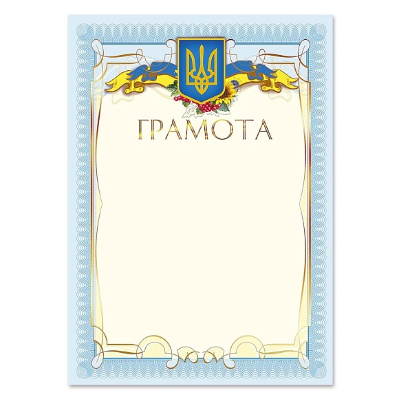 Паперова грамота призначена для нагородження учасників та призерів спортивних змагань. Є невід'ємним атрибутом нагородної атрибутики та активно використовується під час урочистих церемоній.Одностороння грамота має стандартний розмір, формат А4.