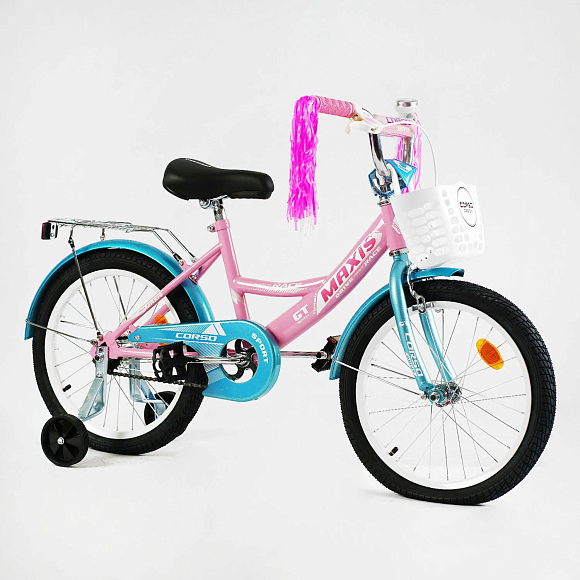 Опис Велосипед 18" дюймів 2-х колісний "corso" maxis cl-18758 (1) кошик, прикраси, ручне гальмо, дзвіночок, додаткові колеса, ЗІБРАНИЙ НА 75%, в коробці