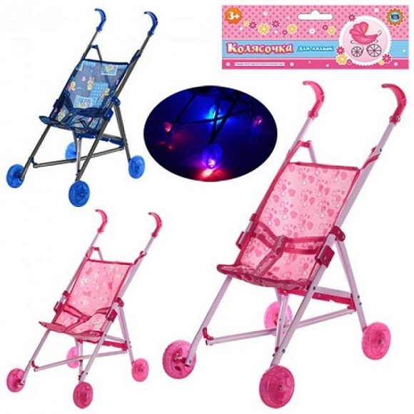 Візок M 0350 U/R мет., тростинка, світяться колеса, 3 кольори, кул, 53-49-27 см.