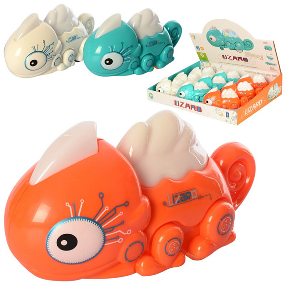 Опис Заводна іграшка HY-707 хамелеон, їздить, 9 шт. (3 кольори) в диспл., 39-8,5-31 см.