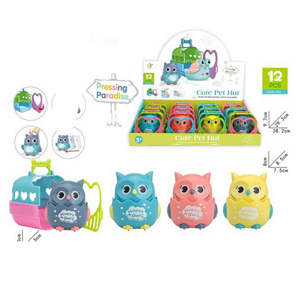 Опис Заводна іграшка hy-756 сова, їздить, валіза, 12шт. (4кольори) в диспл., 38-29-10см.