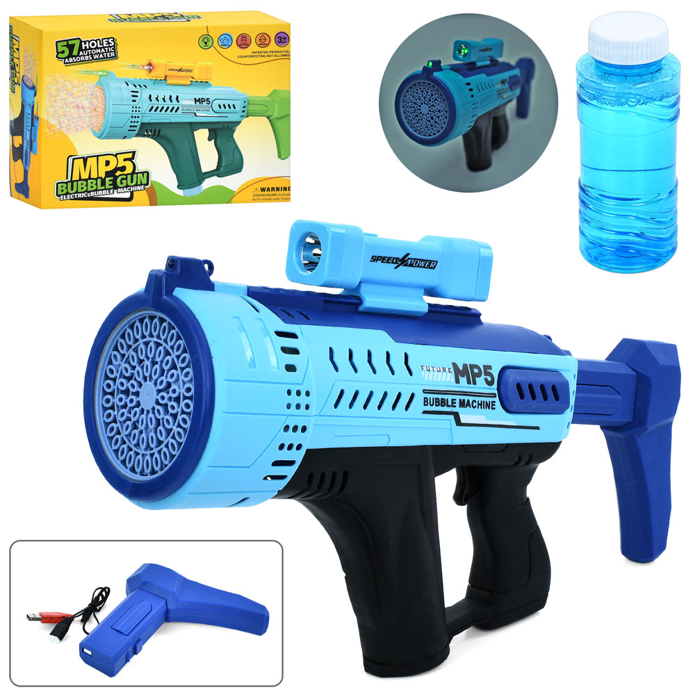 Мильні бульбашки LS7727-48 пістолет/бластер, акум, USB, запаска, 2 кольори,світло,кор.,27-29-17,5см.