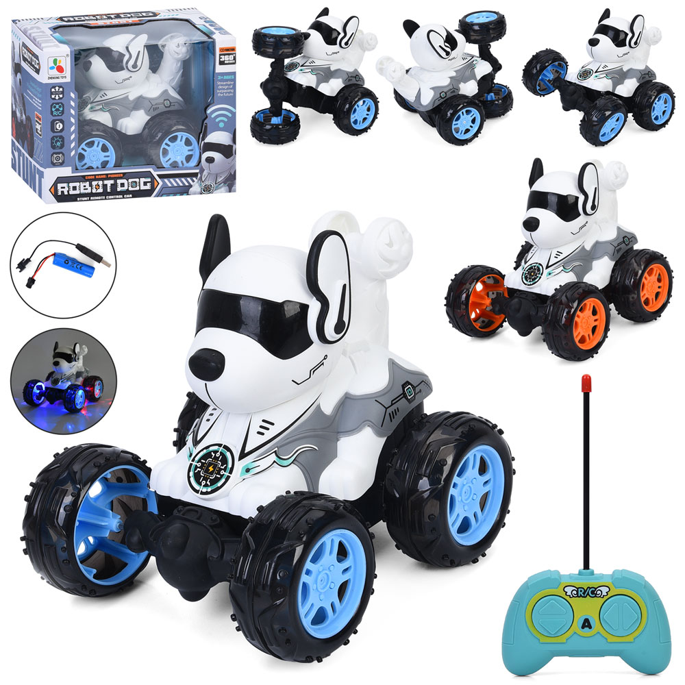 Тварина 200-26A радіокер., акум, собака на колесах,19см,муз.,світло,трюкова,оберт 360, USBзар.в кор.