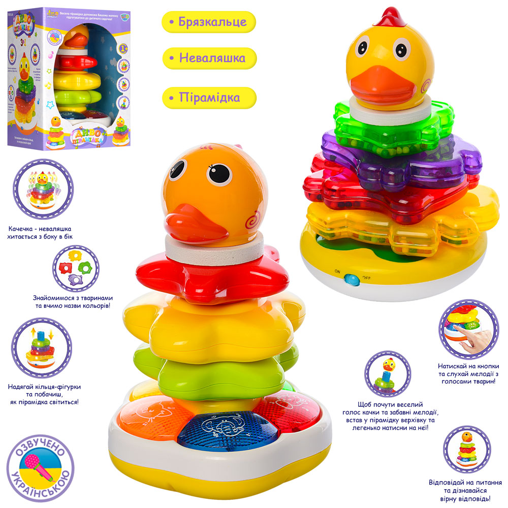 Гра 7015-7040 UA пірамідка,навч.(кольори,тварини) неваляшка,брязкальце,2 види,муз.(укр.),світло,бат.