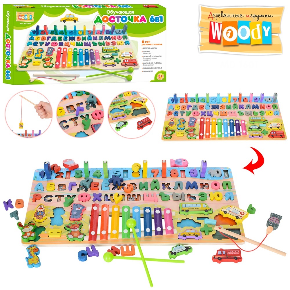 Дерев'яна іграшка Центр розвиваючий MD 1695-RU ксилофон, букви(рос.), риболовля, кор., 45,5-23,5-3,5