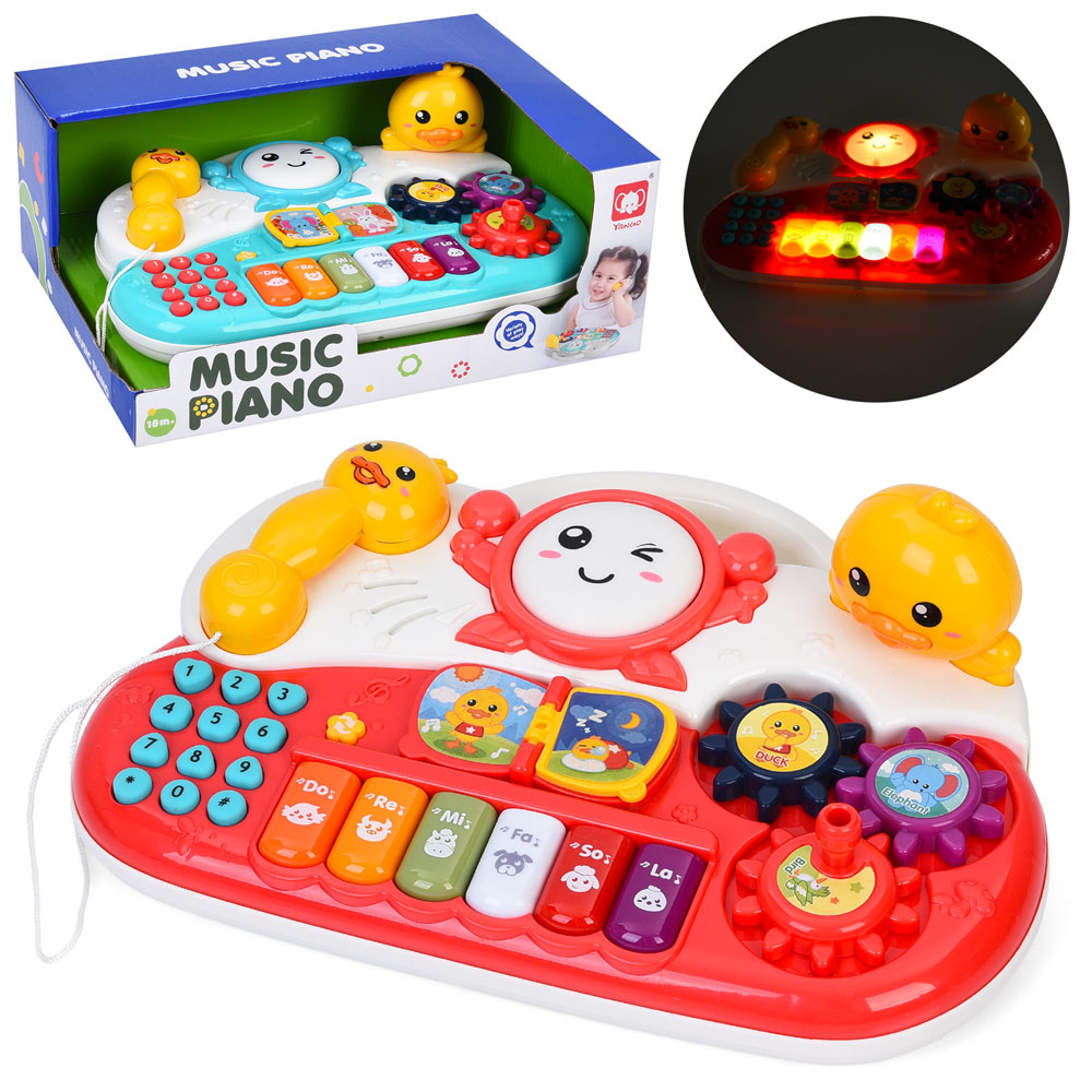 Піаніно 834 25-18-8см, музика,звуки тварин,звук, світло, змінюються режими, телефон, шестерні,бараб.