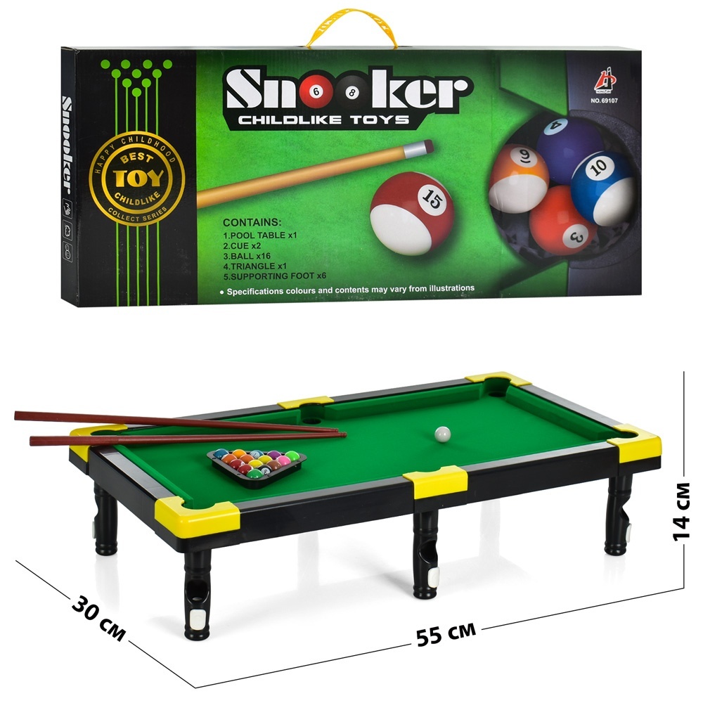 Більярд 69107 на ніжках, 55-30-14 см., кий 2 шт., кульки, кор., 67,5-30,5-4 см.