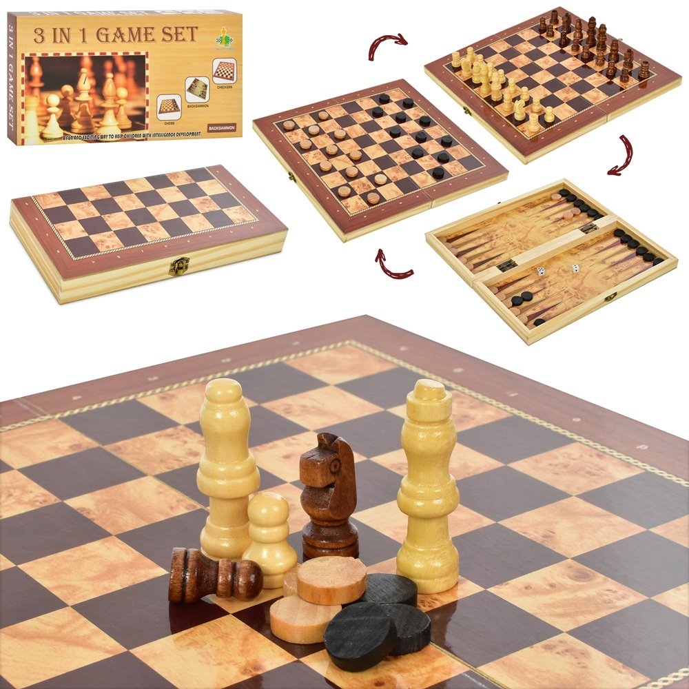 Шахи XQ630-17 дерев'яні, 3в1 (шашки, нарди), кор., 24,5-13-3 см.