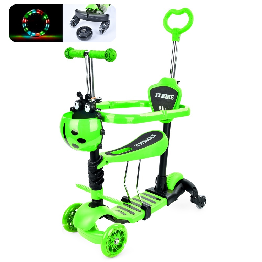 Самокат JR 3-101-GR MAXI,5в1(біговел),сталь+пласт.,3кол.,2пер.ПУ116мм,світ.,підніжка,дод.кол.,зелен.