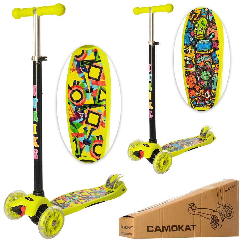 Самокат JR 3-055-L MAXI, кол 3 шт. ПВХ світ., 2 пер. 120 мм., задн. 75мм., принт, 8 видів/8 кольорів