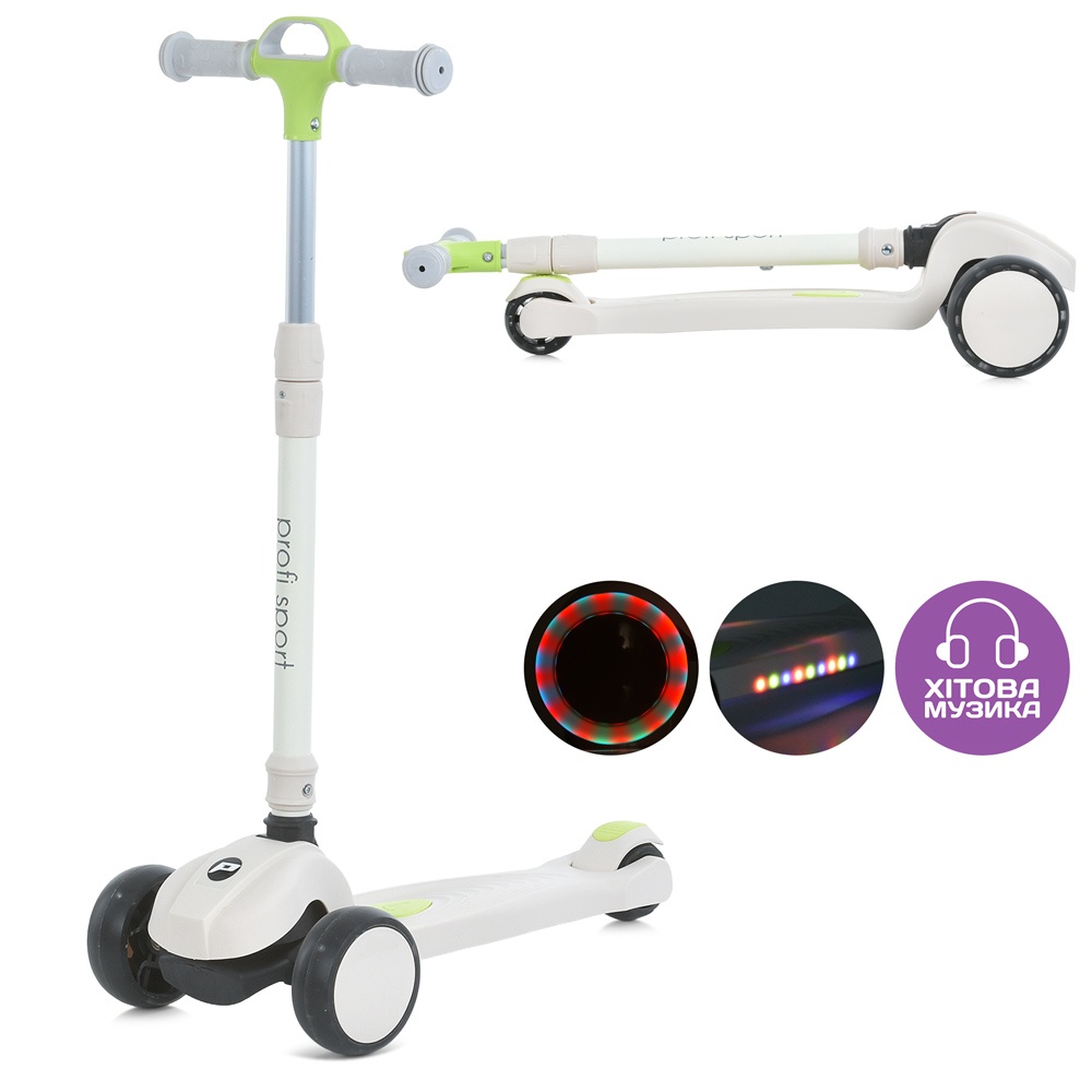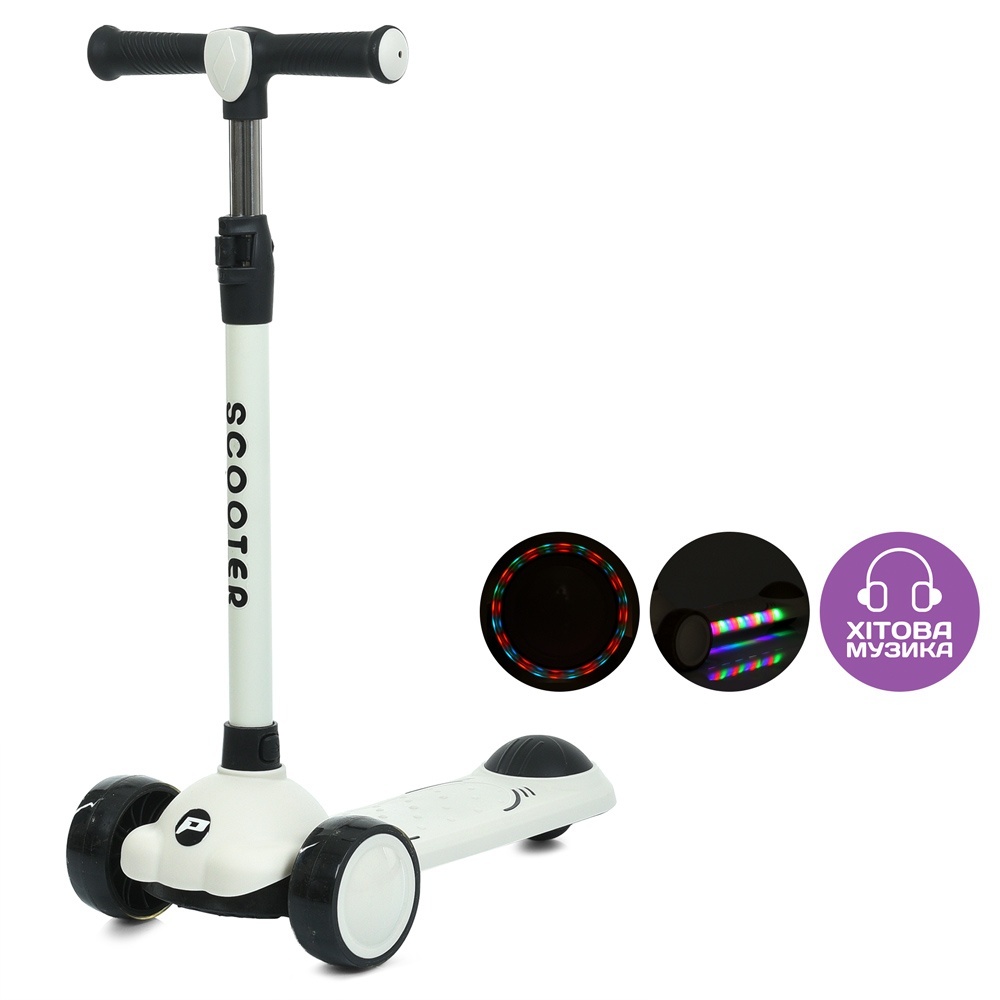 Самокат JR3-138-W мет.+пласт., 3 колеса, 2 кол.120мм, задн.75мм, муз., світло, бат., кор.,69-30-16см