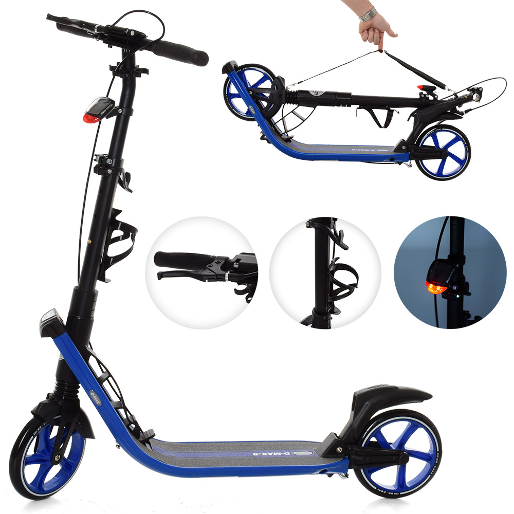Самокат SR 2-015-4-BL доросл.,алюм.+сталь,кол.2шт.ПУ200мм,світ.,регул.кермо/102см.ручн.гальмо,синій.