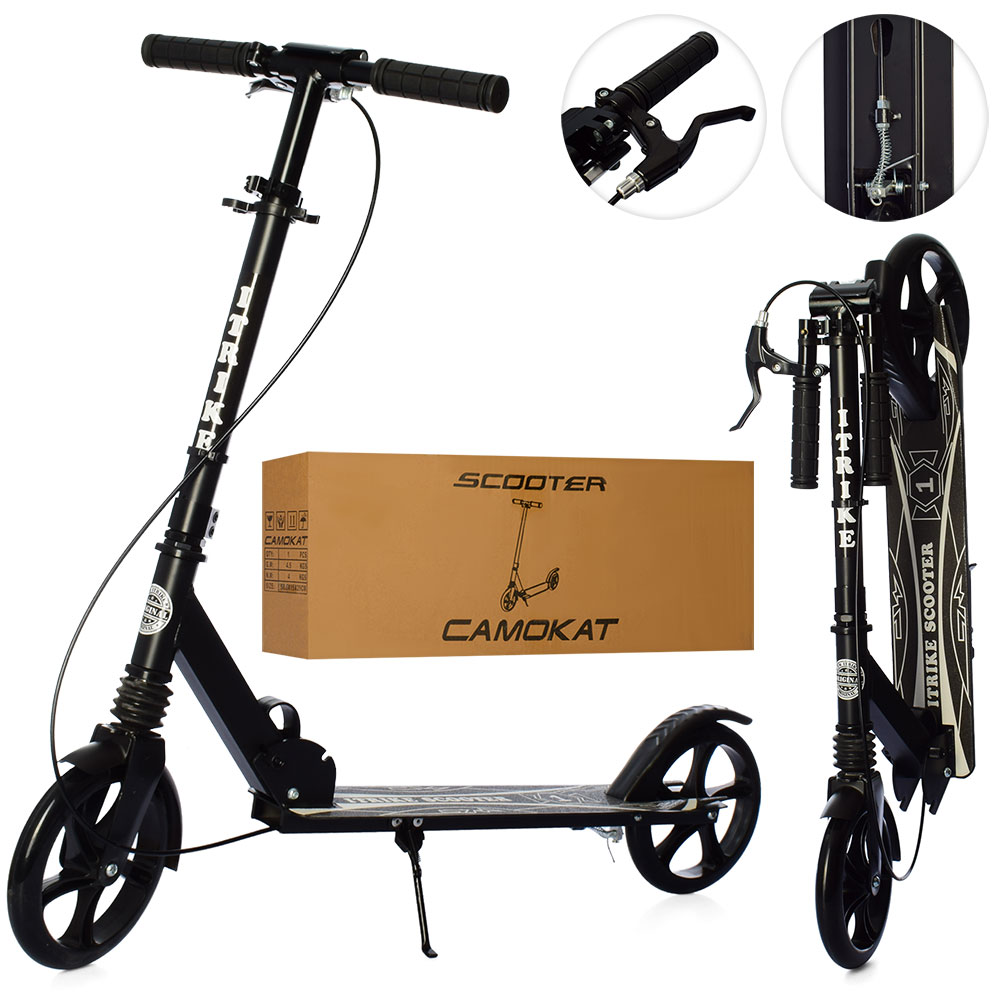 Самокат SR 2-049-1-B дорос.,алюм.,2кол.ПУ200мм.,кермо84-95,5см,підн.57/36-11см,підставка,руч.гальмо.
