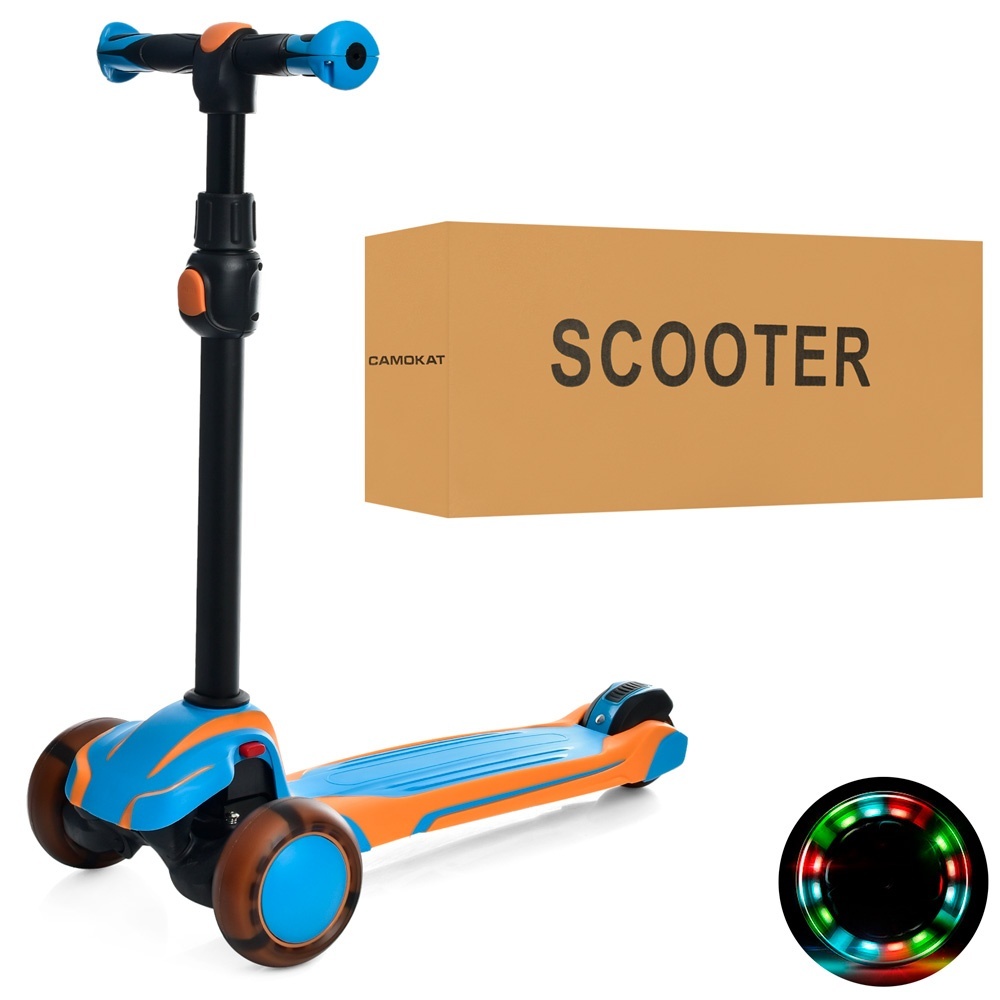 Самокат JR 3-060-35-BL MAXI,сталь+плас.,3кол.ПУ,2пер120мм-світ.,заднє70мм,підн.30-13см,кермо72-81см.