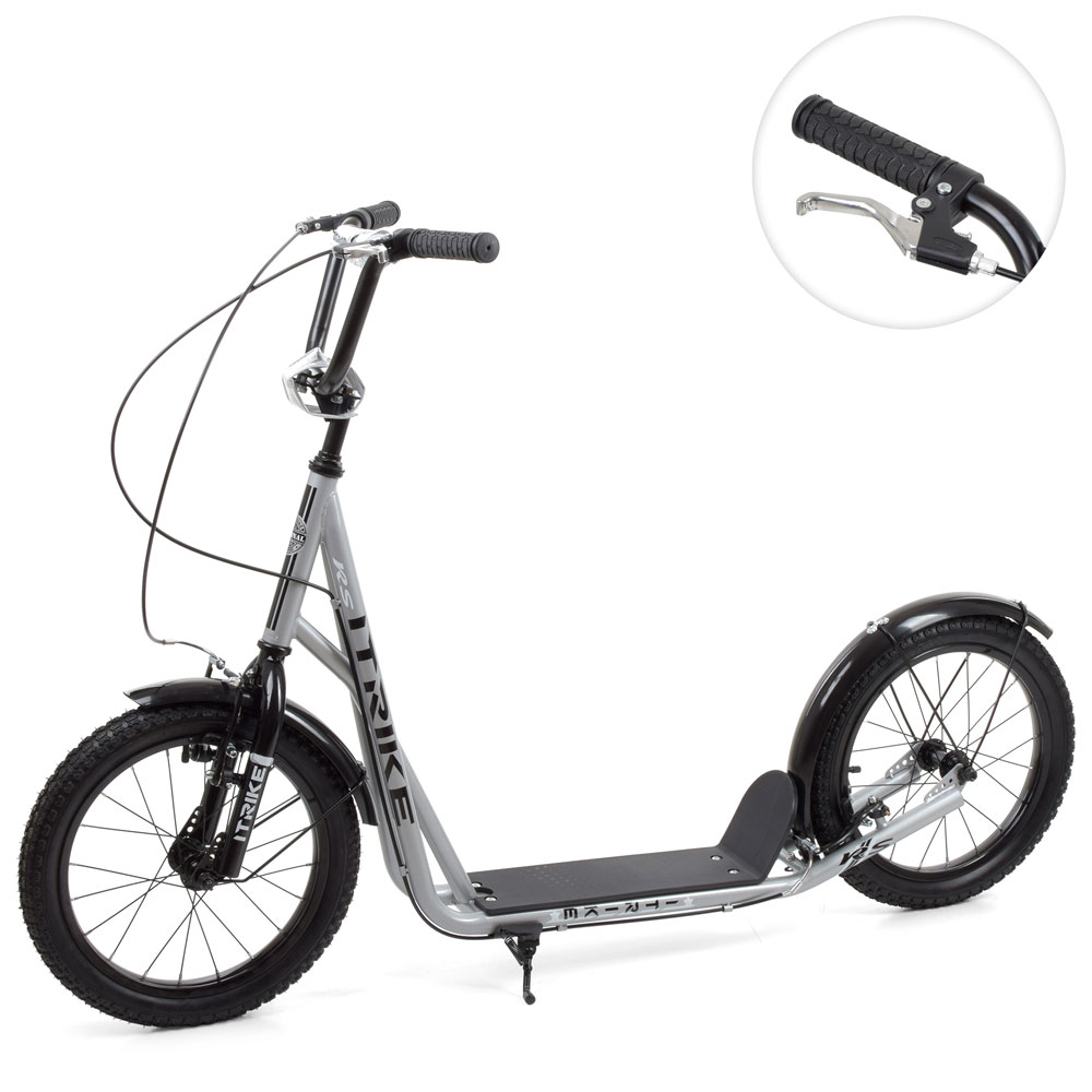Самокат SR 2-018-10-GR дорос.,алюм.+сталь,кол.2шт.ПУ200мм,кермо 89/103см,підніжка,ручне гальмо,замок