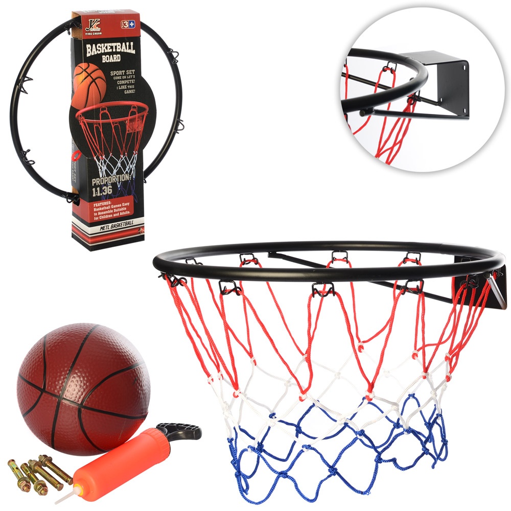 Баскетбольне кільце MR 0168 кільце (мет.), сітка, м'яч, насос, кріплення, кор., 46-53-11см.