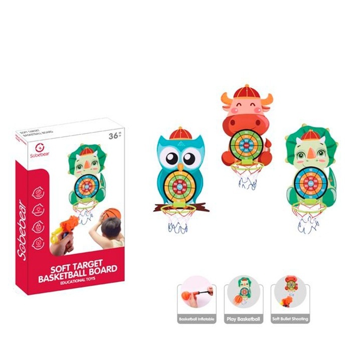 Баскетбольне кільце MR 1142 2в1(дартс),щит(картон),кільце,пістолет,м'які кулі-присоски3шт,3види,кор.